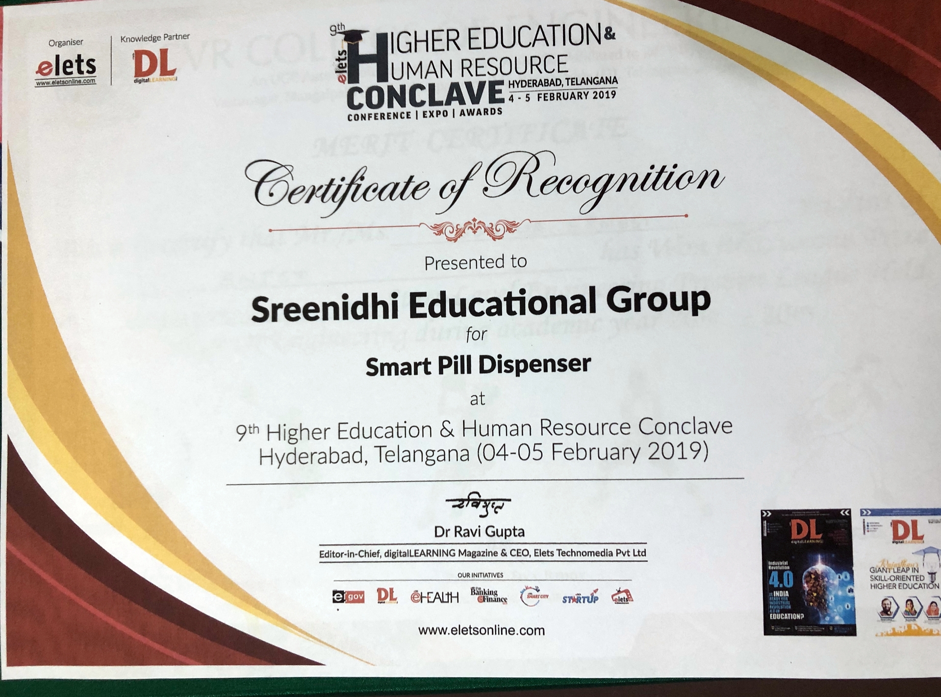 Best Innovator Award - Amongst all startups across the state of Telangana - IKON Awards, India | Funded by All India Council for Technical Education (AICTE) - Ministry of Human Resource Development (MHRD) | Best Innovation Award at The Indus Entrepreneurs Business Idea Tournament (TiEGrad) across the country | Awarded gold at Bangkok IP, Innovation and Technological Exposition | Innovation Recognition Award - 9th Higher Education and Human Resource Conclave, India | Design Patents: Patent No. 322959-001, 353987-001